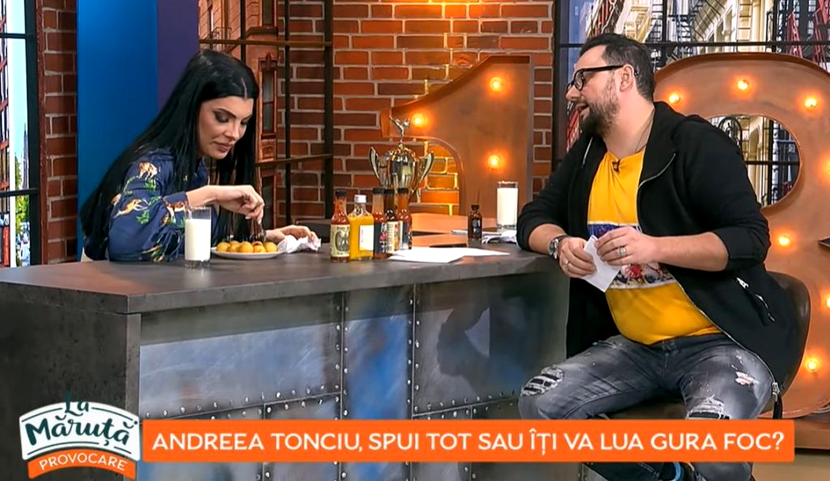Recent, vedeta a fost invitată în emisiunea ‘La Măruță’ și a fost nevoită să treacă prin provocarea sosurilor picante. Andreea Tonciu a șocat pe toată lumea cu răspunsurile date la rubrica „Spui tot sau îți ia gura foc!”