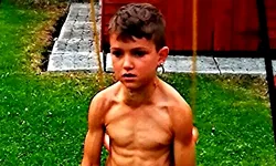 El a devenit un fenomen online după ce starul de fitness Frank Medrano a distribuit pe Facebook o fotografie a tânărului de atunci în vârstă de opt ani.