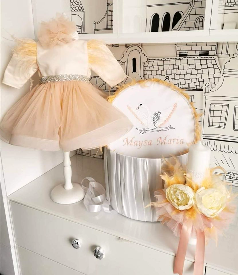 ”Acesta este trusoul de botez al Maysei? Tematica aleasă este “lebăda” pentru că numele de Maysa nu este intâmplator ales. Înseamnă grațioasă și i se potrivește de minune??? Suflețica mea urmează să fie creștinată și vreau să vă împărtășesc fiecare pas în pregătirea botezului”, a spus Deea Maxer.