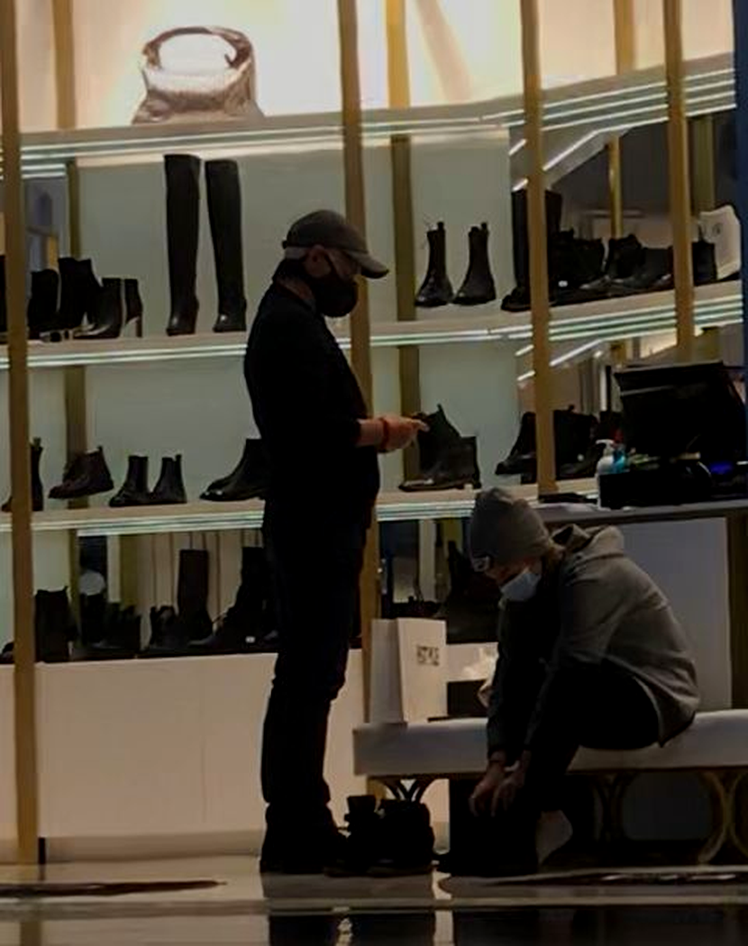 Preț de câteva minute, tânăra a probat mai multe perechi de încălțăminte. În tot acest timp, Virgil Ianțu a butonat de zor telefonul mobil, însă nicio secunda nu a încercat să-și ‘deranjeze’ fiica din activitate.