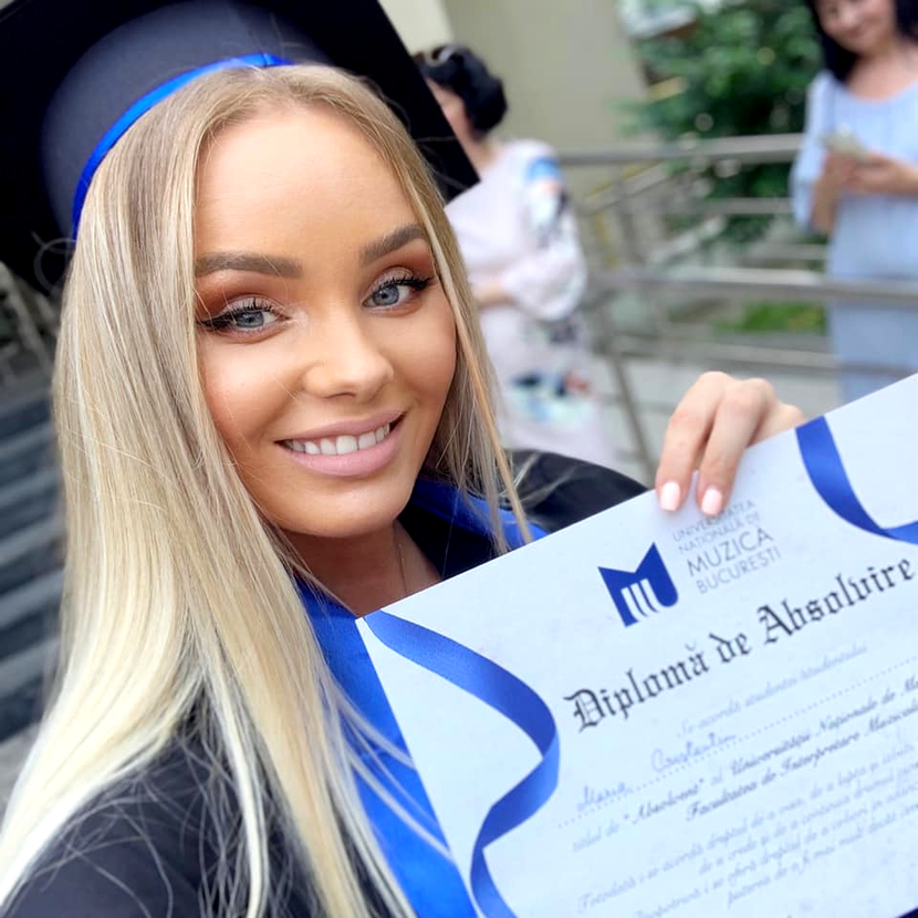 “4 ani frumoși unde am avut parte de cei mai buni îndrumători și mi-am urmat visul! Urmează master-ul”, a scris Maria Constantin în mediul online.